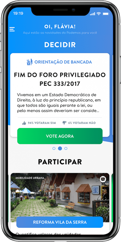 O PODEMOS acredita que o poder de decidir tem que estar nas suas mãos sempre, não de 4 em 4 anos. No APP PODEMOS, você vota em diversos projetos que estão em discussão.